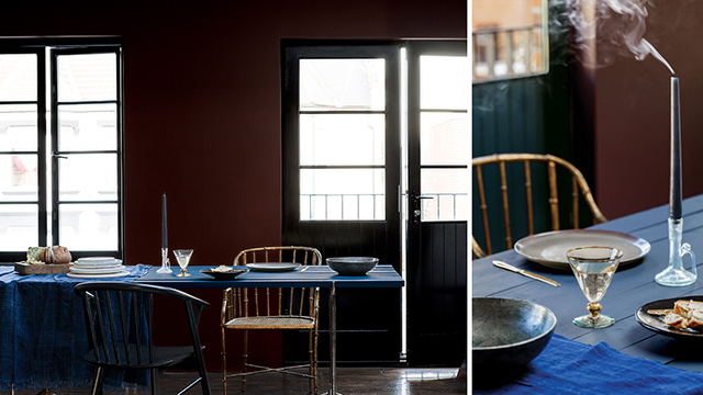 Một trong những điều mới mẻ cho dịp tới là trang trí với bảng màu tối. Kế hoạch ăn uống này từ xu hướng Dark & Light của chúng tôi kết hợp các màu bão hòa sâu bao gồm Bitter Chocolate và Sapphire Springs 1, trong hình, với ánh đèn flash bằng kim loại cho một cái nhìn sang trọng vang vọng những bức tranh của Dutch Masters. Tâm trạng, nhưng theo một cách tốt.